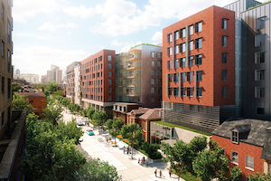 The project also includes sidewalk and streetscape improvements (between Dundas Street East and Gerrard Street East), as part of a broader public realm plan for George Street. These improvements will link Moss Park to Allan Gardens and reinforce the identity of the Garden District where the revitalization site is located.