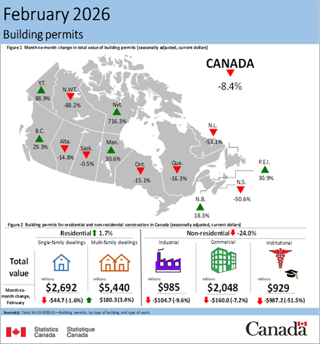 A significant drop in non-residential construction activity led to a drop in building permit values in February.